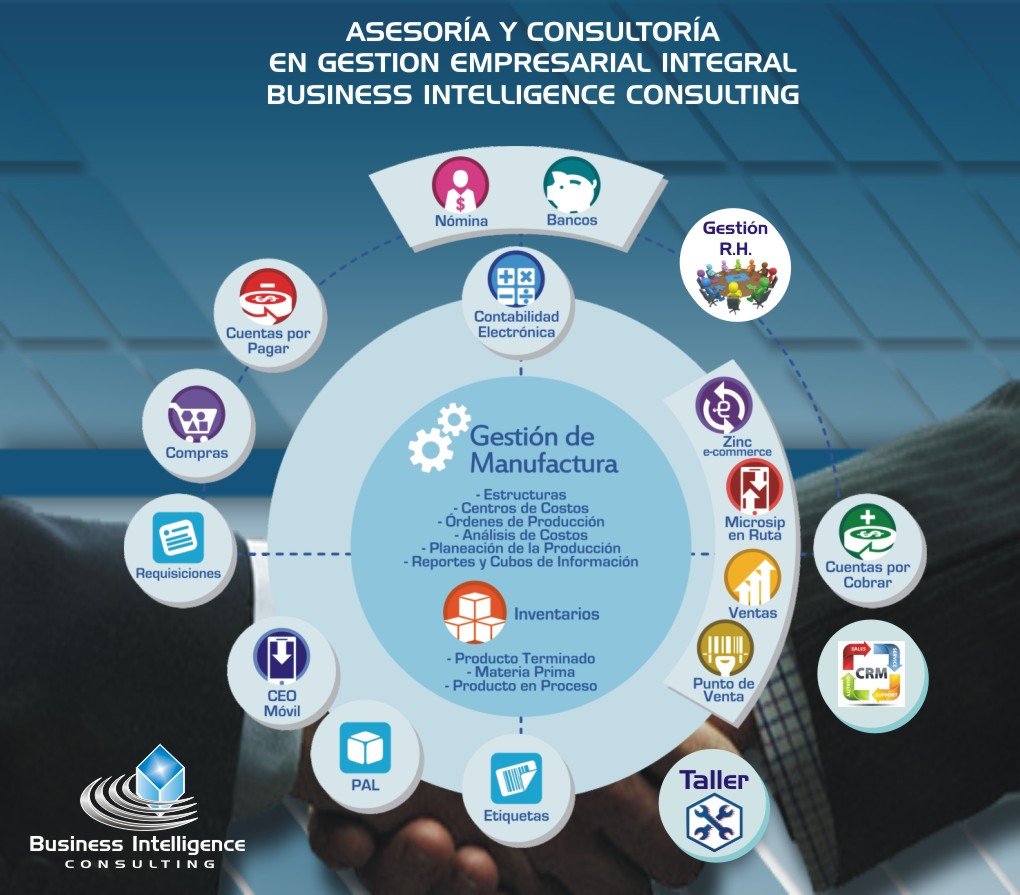 La información de su empresa es uno de los más preciados activos con que cuenta.  En Business Intelligence Consulting, ofrecemos la seguridad, solvencia en estrategias y soluciones integrales en Gestión Empresarial para diferentes verticales de negocios, Contamos nuestro grupo de profesionales,  líderes. Certificados en servicios de Calidad, Asesoría, Consultaría, Capacitación y Tecnologías de la Información.